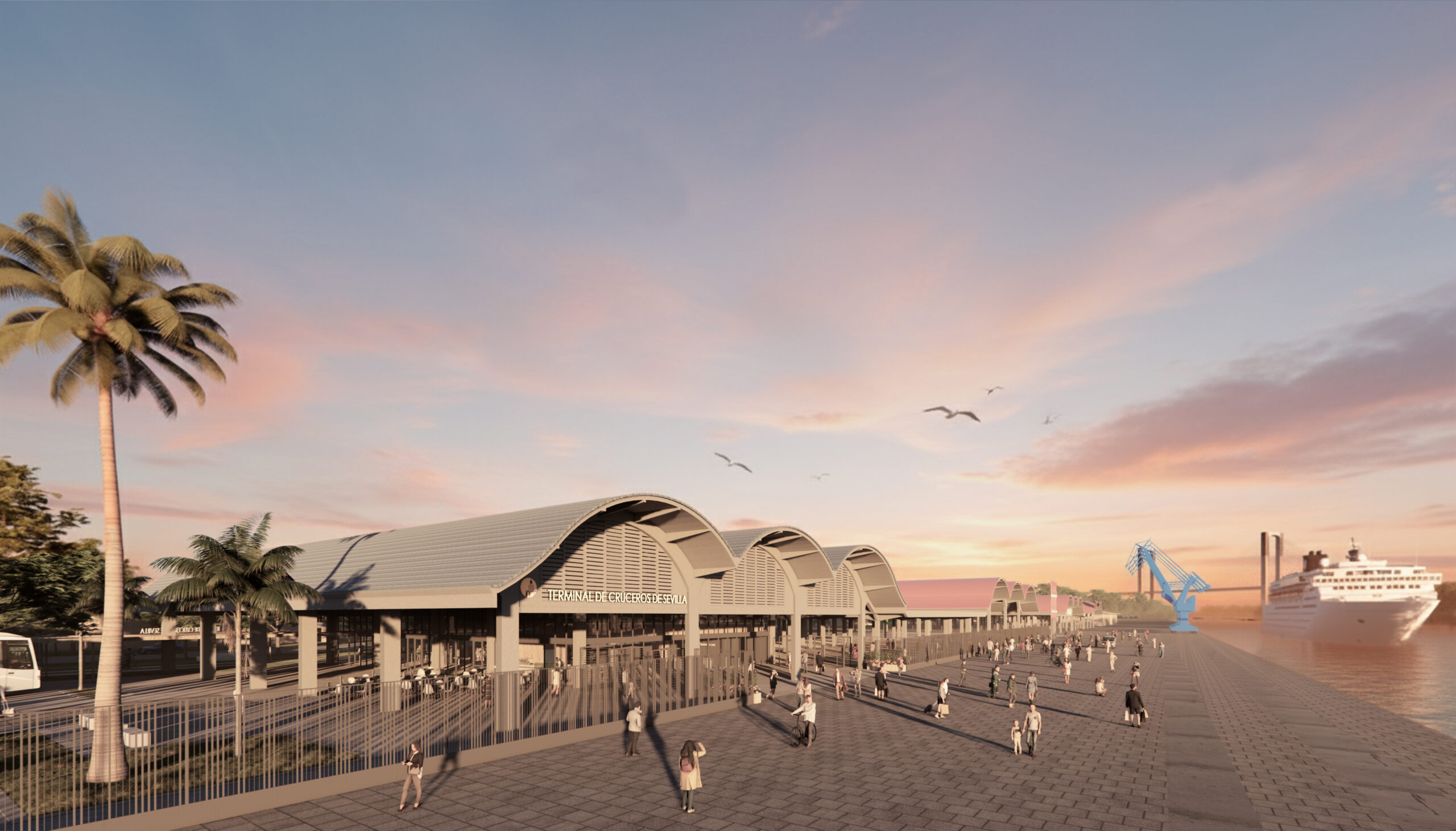 Después de realizar la anterior Terminal de Cruceros de Sevilla, materializada con contenedores marítimos y que seguirá usándose para megayates en el muelle de las Delicias, el diseño de la futura terminal ubicada en el Tinglado Nº5 del muelle de Tablada, respeta especialmente el valor arquitectónico y patrimonial de la estructura prexistente.